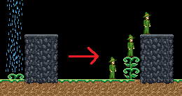 - Causes large vines to grow (from 3x1 tiles to 3x4 tiles big), creating a platform to reach higher places