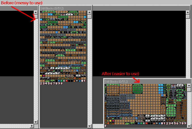 - You may wish to resize the tiles selector so that they are arranged nicely. Unfortunately it doesn't keep its size, so you'll have to do this if you minimize, resize, etc. Example: